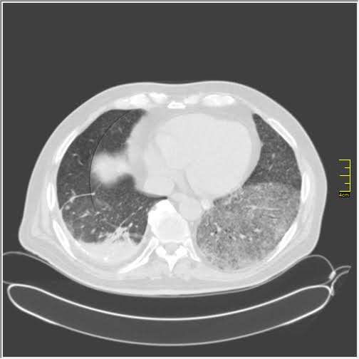 Pacijent sa malignim oboljenjem i kovidom-19. Obostrano bazalno.